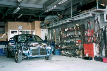 発展する新車の大量生産システムに比べ事故車修復の板金作業の出来栄えは、職人の腕にかかっています。 1台1台違った損傷を見事に復元します。それはあたかも手品師のようです。 板金経験30年の大御所職人、整備の技術も兼ね備えたメカ板金職人。、サポートする中習職人、この3名のチームワークに加え、強力な修整機で、ミリ単位の作業をこなしています。 勿論軽板金なら朝飯前です。